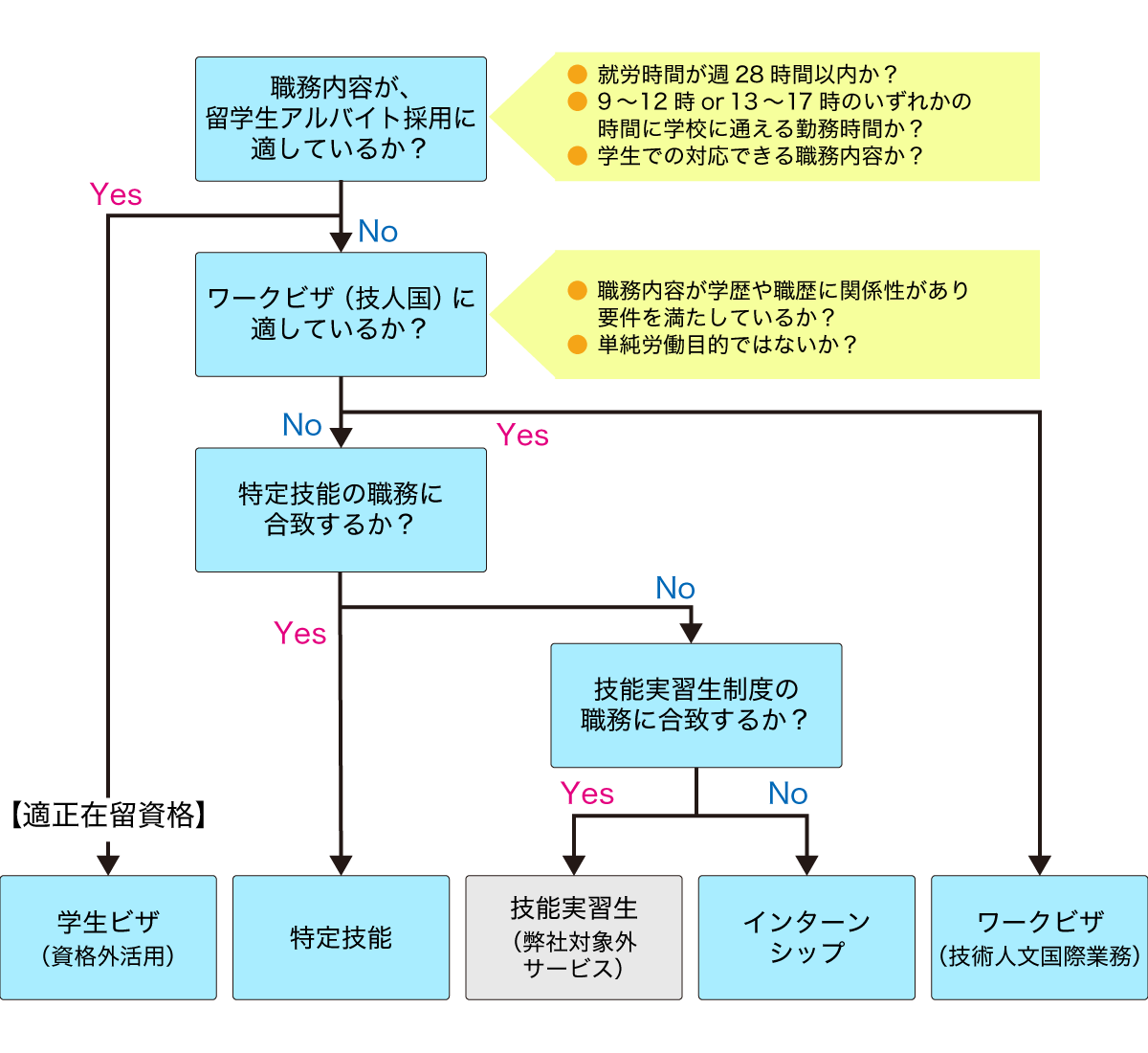 ● 技能実習生 > 特定技能 > ワークビザ(技人国) > 学生アルバイト